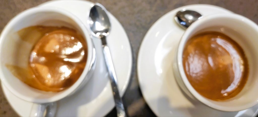 Kurz hinter Mailand gibt es den ersten italienischen Espresso an der Autobahn. Alles ist wuselig und laut in der Raststätte und das Überangebot an Familien-Packungen mit Lebensmitteln von Nudeln, Süßigkeiten bis hin zu großen Campagnolo-Schinken lässt selbst an diesem Ort keine Wünsche übrig. Wir begnügen uns mit einer Tasse Espresso, schließlich gibt es noch Rest aus dem Kühlschrank von daheim.