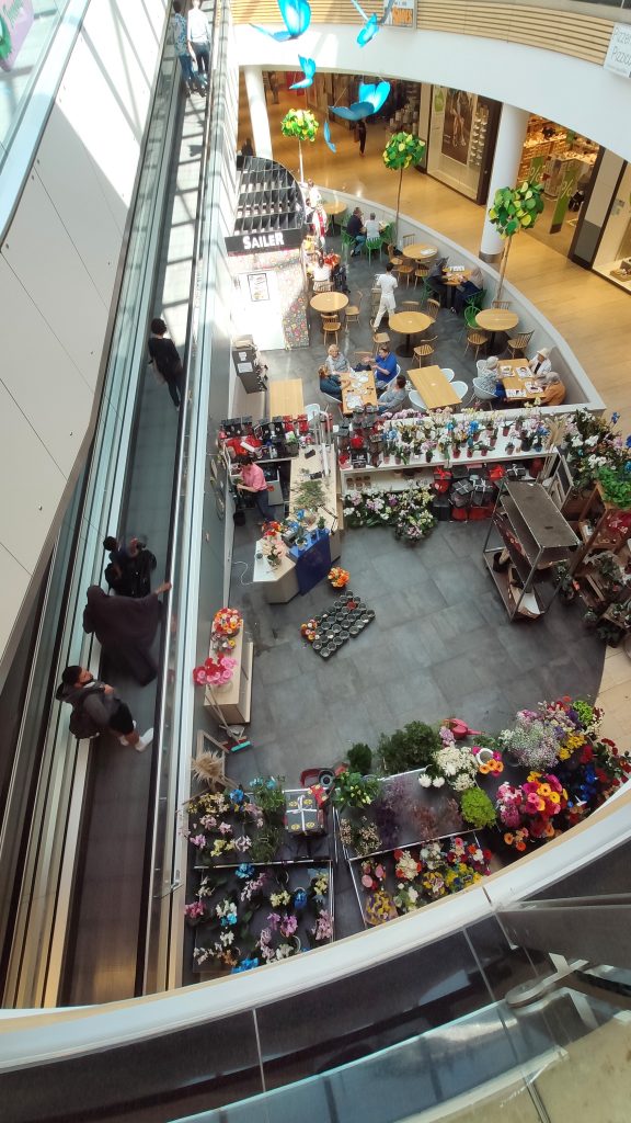 Ich stehe, während mir diese Gedanken durch den Kopf schießen, in einem Einkaufzentrum und blicke auf das Geschehen unter mir. Die Abnabelung erfolgt in Sekundenschnelle. Unbemerkt und doch passiert es. Selbst wenn der Ortswechsel und meine erhöhte Position einzig der Architektur, meinem Empfinden und schließlich der Lage des Parkplatzes meines Autos geschuldet sind. Ich lege es also gar nicht drauf an, mich von den Menschen, die wie ich einfach als Besucher an diesem Ort sind, abzukapseln. Etwas Besonderes gar zu sein. Bin ich auch nicht. Schon gar nicht, weil ich eine andere Position innehabe. Örtlich betrachtet, meine ich.