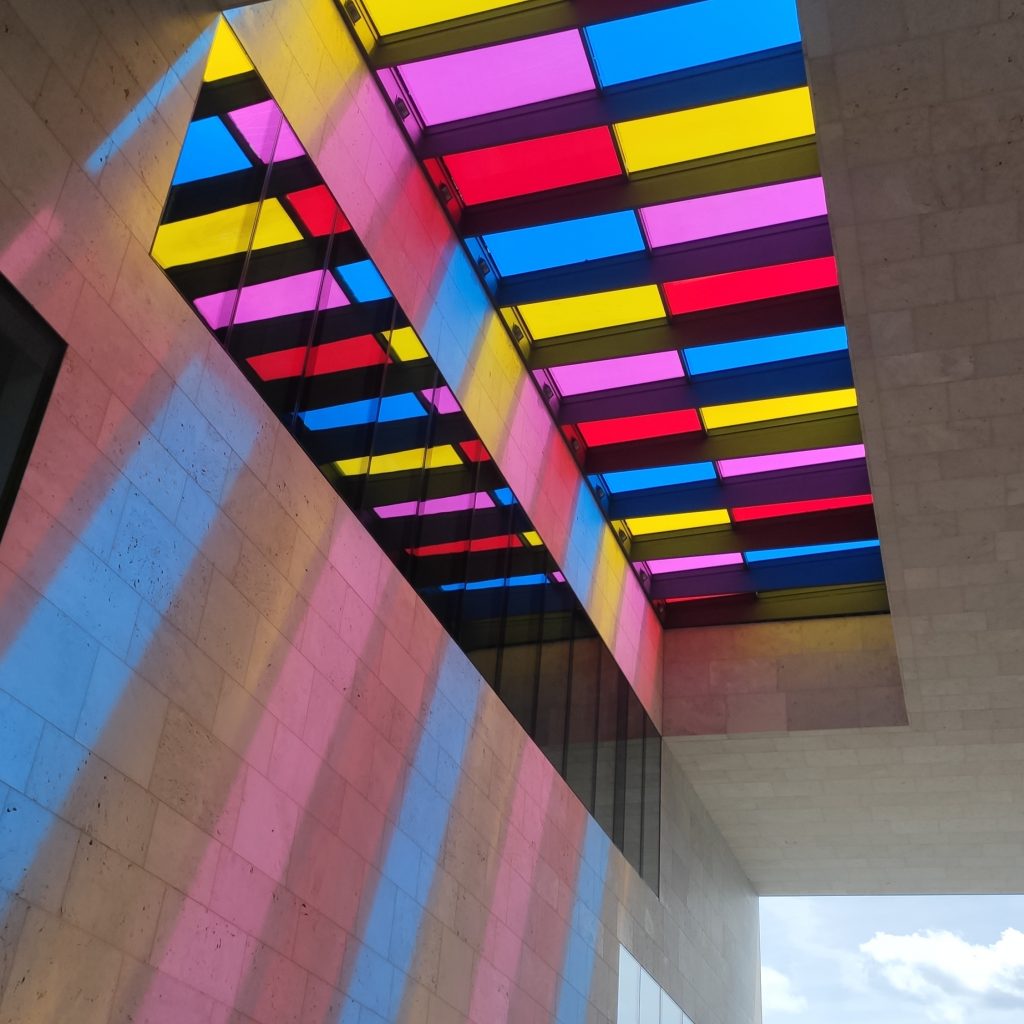 Dennoch, ich war jung. Ein Kind geboren und das zweite unterwegs und am Ende vom Geld noch viel vom Monat übrig. Kreativität, Erfindergeist und Eigeninitiative waren neben Verzicht somit das Mittel der Wahl, um den Traum vom Eigenheim in die Tat umsetzen zu können. Trotzdem, abweichend vom Einheitslook, wollte ich den Putz an den Wänden im Wohnzimmer nicht glatt, sondern strukturiert mit abgerundeten Ecken haben. Kuhstalloptik. Das verständnislose Gesicht der Verputzer hat mir schnell meine Grenzen aufgezeigt und das Ergebnis war semi gut. Immerhin konnte ich mich den Maurern gegenüber durchsetzen, die mir für das innen liegende Badzimmer zum Flur hin einen Lichtstreifen aus türkisfarbigen Glasbausteinen einmauerten.