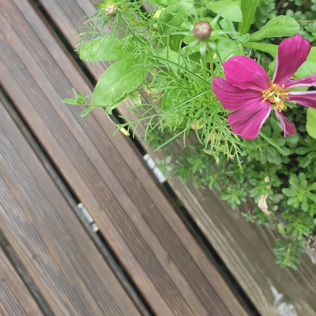 Nach dem Frühstück verteile ich nun den Rest aus der Dose und beschließe im Flow zu bleiben und mich meinem zweiten Freisitz zu widmen. Das habe ich, ehrlich gesagt, ein wenig weggeschoben, denn diese Aufgabe ist weitaus kniffliger. Der Balkon ist nicht nur größer und vollgestellter mit einem schweren Blumenkübel, er grenzt auch direkt an die helle Hausfassade an, weshalb hier sorgfältiger gearbeitet werden muss. Nicht gerade meine Stärke. Hilft aber alles nichts und so verwerfe ich alle anderen heutigen Pläne und mache mich wieder auf den Weg zum Profibaumarkt.