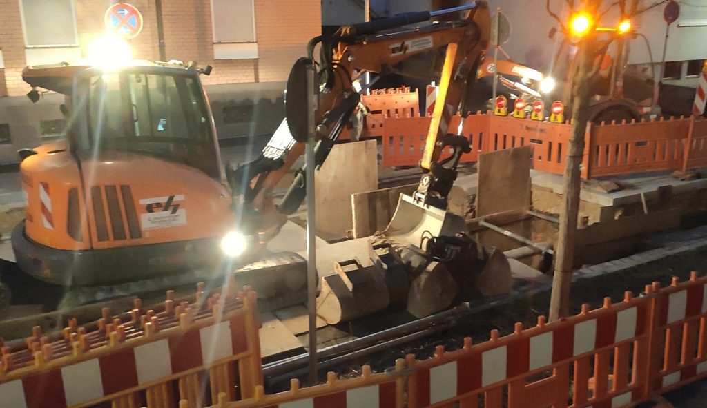 Emsig geht es morgens, unter dem Flutlicht des Maschinenparks, los mit den Arbeiten. Die Dieselmotoren des schweren Geräts tuckern gleichmäßig und bei Befehlen zur Bewegung wird ihnen ein brummendes Aufheulen entlockt. Ruckartig und ein wenig stur, so scheint es mir, setzen sie sich dann in Bewegung. Hier und da werden Anweisungen von oben am Grubenrand ins innere gerufen. Ab und zu schaut in rhythmischen Gleichmäßigkeit eine Schaufelspitze hervor. Immer dann, wenn es filigran wird, wird per Hand gebuddelt. Schließlich befinden sich viele spannende und wichtige Dinge unter dem schwarzen Teer des Straßenbelags. Unsichtbar für unsere Augen aber dennoch vorhanden. Und wie gut, dass die Leitungen, Versorgungsrohre und Entsorgungsschächte einfach so da sind. Da sind für uns. Es hat viele Jahre Ingenieurskunst gebraucht, um das alles auszutüfteln. Das Adersystem einer jeden Stadt, ohne die es merklich unangenehmer wäre.