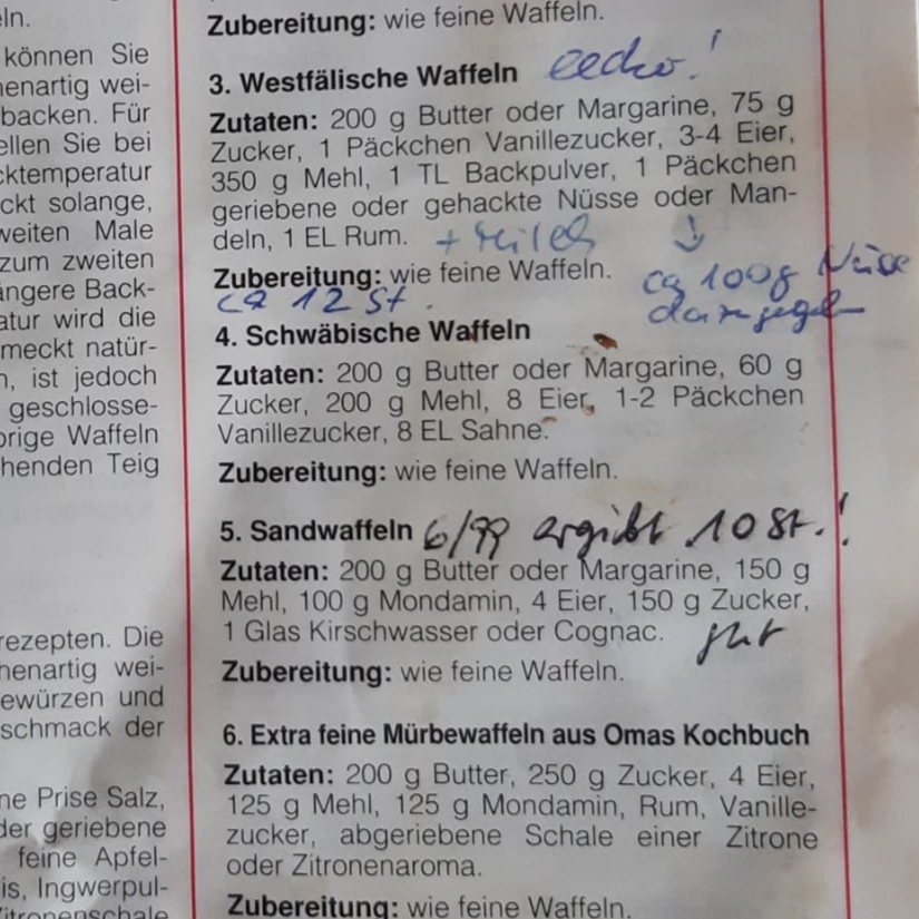 Bei dem Gedanken an Puderzucker kommen mir die Waffeln meiner Mutter in den Sinn. Oh, waren die lecker. Ich frage sie nach dem Rezept und erhalte postwendend eine Antwort. Praktischer Weise sind nützliche Hinweise und Kommentare gleich mit dabei. Darauf kann ich mich blind verlassen und kaufe entsprechend ein. Ich freue mich schon jetzt auf morgen, wenn es losgeht mit backen. Warme Waffeln mit heißem Ostfriesentee. Optimale Bedingungen für ein schönes Wochenende.
