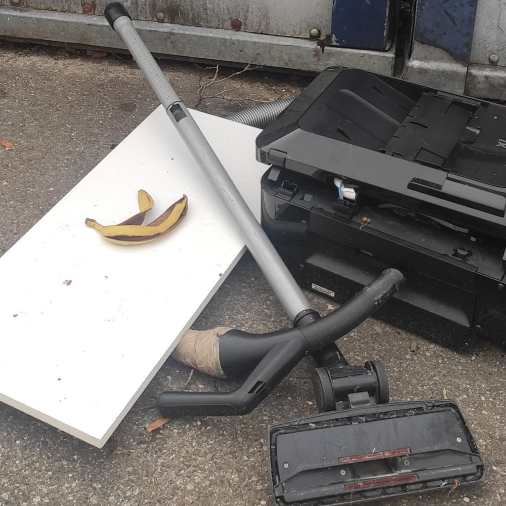 Mein erster Weg führt mich zum Glascontainer (#301 Altglas). Diesmal hat er Zuwachs bekommen. Neben einem kaputten Staubsauger liegt wieder eine Bananenschale auf dem Boden. Wenn ihr mich zu Beginn von dix:Minutes gefragt hättet, über was ich wohl mehrfach schreiben werde, wäre ich im Leben nicht auf die Idee gekommen, dass es Bananen sind. Vielleicht liegt es daran, dass ich gelernt habe, meine Umwelt aufmerksamer zu beobachten, mir Kleinigkeiten, Belanglosigkeiten zu merken.