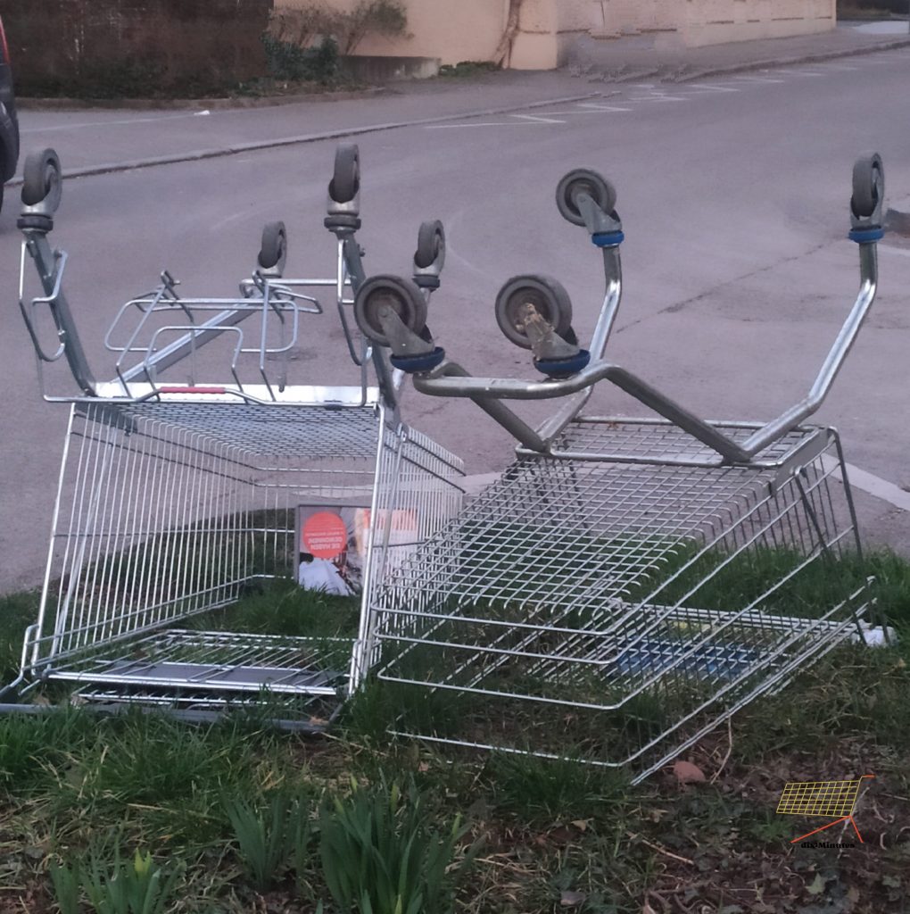 Upsi, der Einkaufswagen hat sich vermehrt. Stand er am Wahlsonntag noch einsam auf dem Grünstreifen zwischen Fußweg, Parkplatz und Straße, vor dem Wahllokal (#419 Bundestagswahl), hat er nun Gesellschaft bekommen. Scheinbar von Zauberhand sind sie jetzt zu zweit. Haben sich ausgetobt und liegen bäuchlings am Straßenrand. Böse Zungen würden wahrscheinlich behaupten, wir wohnten in einer unseriösen Gegend. Sie würden behaupten, wir wohnten in einem „Brennpunkt“, um wenigstens das Klischee zu bedienen. Das stimmt nicht. Oder vielleicht doch und ich habe es nur nicht gemerkt?