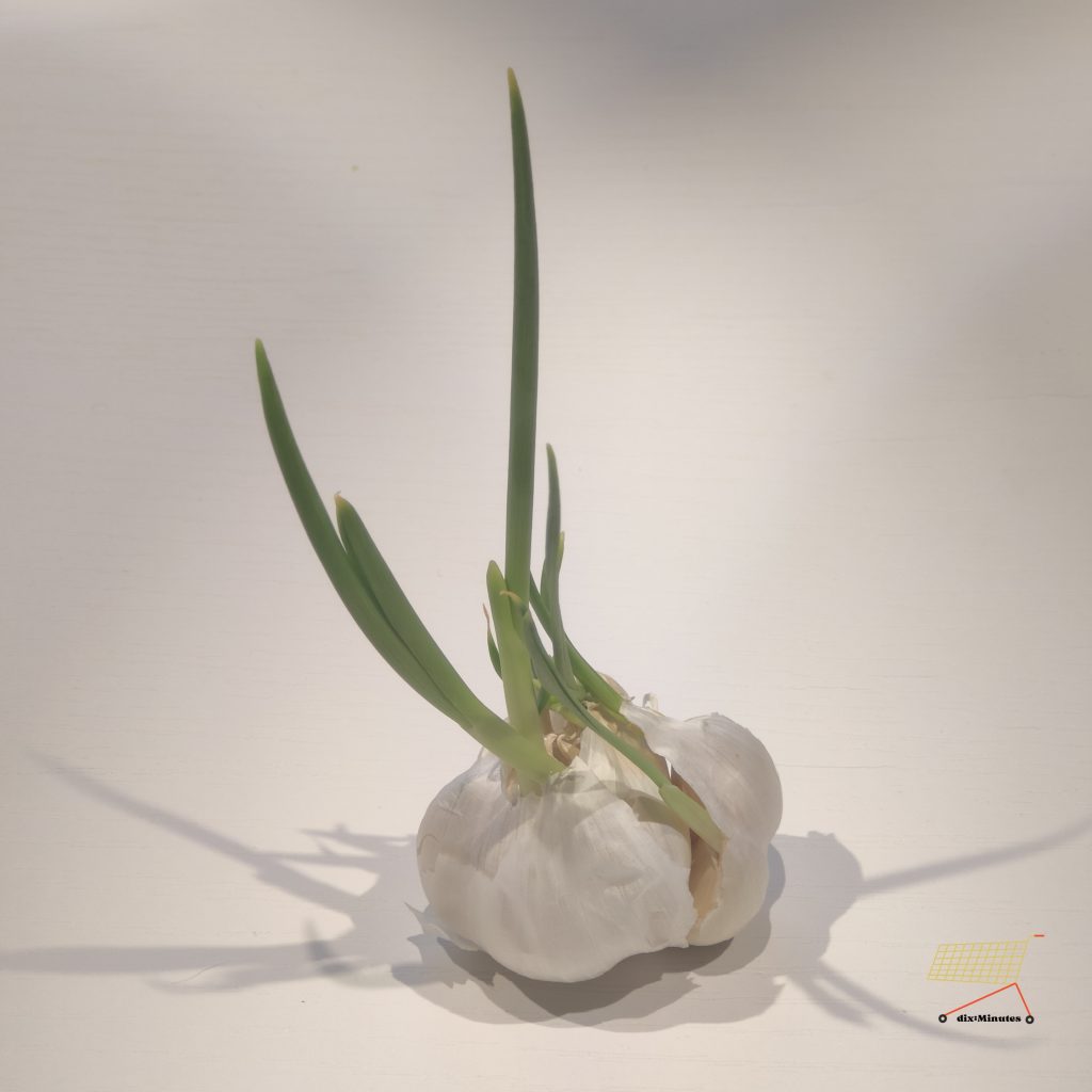 Wie ich es von meinen Gedanken gewöhnt bin, springen sie hin und her. Aus dem nichts denke ich an die Knoblauchzehe, die wild entschlossen in der Schale neben meinem Herd angefangen hat zu keimen. Der Wille muss belohnt werden. Am Wochenende pflanze ich sie in den Garten.