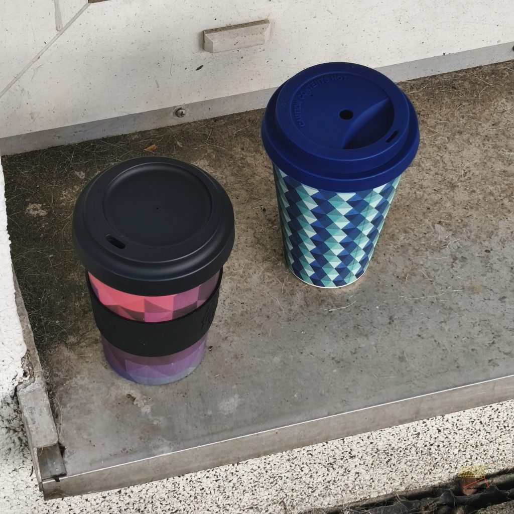 Ich habe euch längst nicht alle Fundstücke meines kleinen Umwegs neulich (#588 da wird ja der Schnaps in der Pfanne verrückt) gezeigt. Was ich nun allerdings gerne nachholen möchte. Auf dem Fensterbrett eines Kellerfensters stehen diese beiden recht gefälligen Kaffeebecher. Für den kleinen Kaffee to go. In diesem Fall wenigstens mit der Mehrwegoption, obwohl der ursprüngliche Käufer oder die ursprüngliche Käuferin darin anscheinend keinen Mehrwert sieht. Sonst würden sie schließlich nicht hier stehen und auf einen neuen Besitzer:in hoffen.