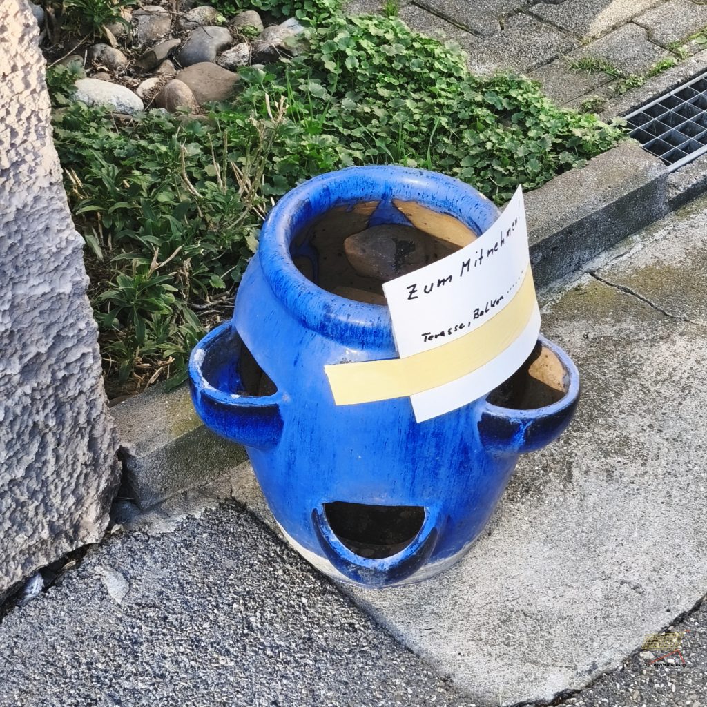 Unlängst bin ich über diesen Pflanztopf gestolpert, der am Straßenrand auf einen neuen Besitzer oder Besitzerin wartet. Für Terrasse oder Balkon Pünktchen, Pünktchen, Pünktchen, ist auf dem Zettel, der ihm an der „Stirn“ klebt, zu lesen. Ich kann mich noch sehr gut an jenen Tag erinnern, als ich mir just einen ähnlichen Blumentopf zulegte.