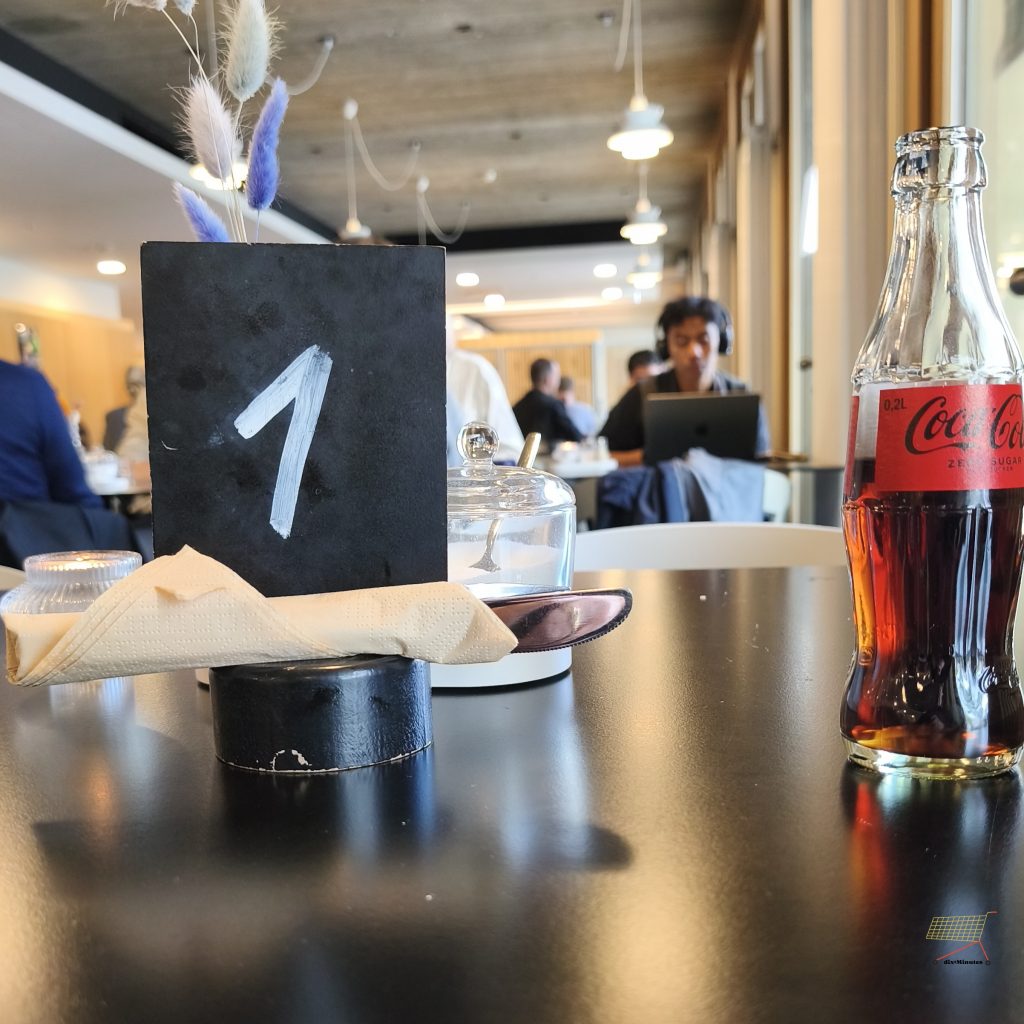 Pause. Zugegeben, darauf habe ich mich gefreut und gehofft, dass sich nichts geändert hat. Meine Erwartungen werden erfüllt. Das Kuchenbuffet mit seiner großen Auswahl an leckerem Süsskram ist geblieben. Ansonsten ist die Cafeteria völlig neu. Kleiner und direkt an der Hauptstraße gelegen. Früher war sie durch Gebüsch von der Straße getrennt, reichte über zwei Geschosshöhen und bestach durch ihre Waschbetonoptik. Die Tische standen in Gruppen zusammen, jetzt bilden sie Reihen.