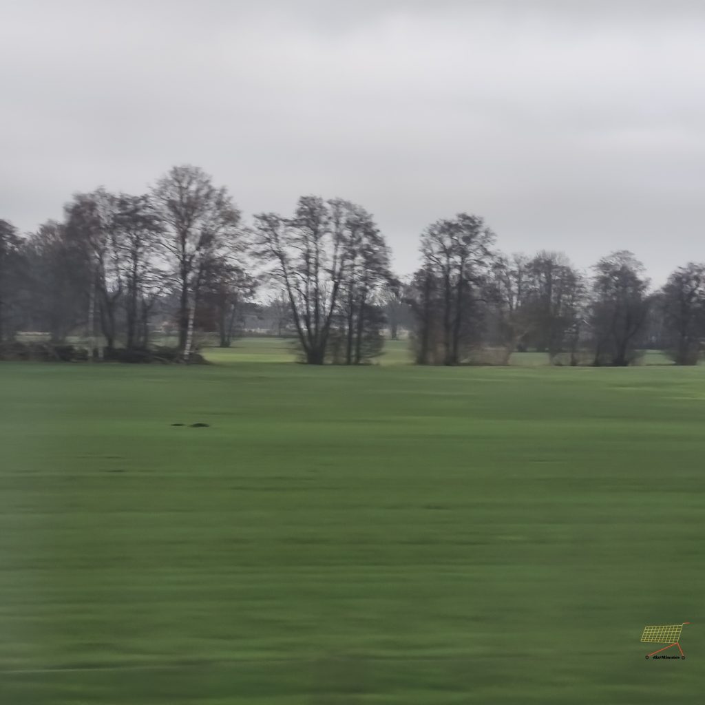 Vom Zug aus betrachtet ist alles klein, weit weg, eine Miniaturausgabe. Felder in Parzellen unterteilt, umsäumt von Baumalleen. Baumalleen, die sich, wie mit dem Lineal gezogen oder, trägen Bächen folgend, geschwungen durch die Felder mäandern. Ihr Wasser ist gerade breit genug, damit alle, die an die andere Seite kommen möchten, sich fragen müssen, ob es mit einem beherzten Sprung zu schaffen ist oder nicht. Entengrütze schwimmt mancherorts oben auf und lässt es grün aussehen. Bildet bald eine geschlossene Fläche und erweckt den Anschein, wie die Wiesen um es herum zu sein.
