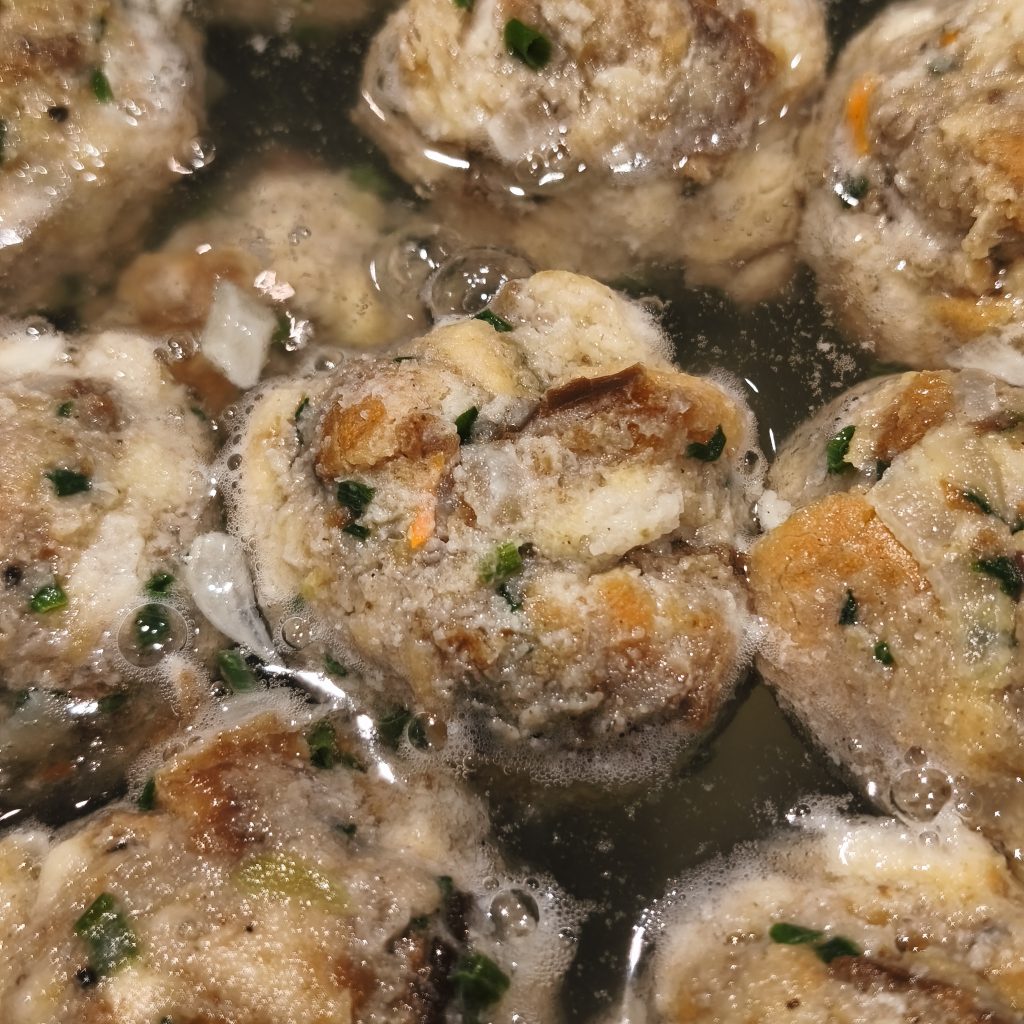 Nach dem Frühstück mache ich mich über meine: alte Brötchen- und Brotsammlung her, denn fürs Abendessen habe ich ‚Semmelnknödeln‘ geplant. Als mein Blick in die Tüte fällt, erinnert mich der Anblick unwillkürlich an früher. Damals. Auch meistens sonntags, als ich beim Bäcker nach altem Brot fragte, um es mit zu den Pferden zu nehmen. Das sah genauso aus. Jedoch war meine Intention, wie ihr versteht, eine komplett andere, oder nicht?