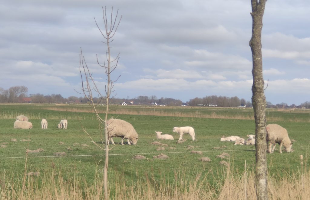 Aber ich schweife ab. Meine Laufrunde führt mich in Richtung Gezeitenfluss. Wieder vorbei an diesen kleinen Katen mit ihren meist roten Klinkern, windschiefen Dächern, kleinen Fenstern. Die Fassaden mitunter aufgetürmt zu einem imposanten Dreizack. Ich laufe auf den Deich, der hier noch befestigt ist. Vorbei an Freibad und Strandbad, die in Erwartung der Saison sich schon ein wenig hübsch gemacht haben. Dann erreiche ich den unbefestigten Teil des Deiches. Ich passiere das Gatter, stehe auf der Schafweide. Dort beginne ich mit meinem Hindernislauf um Maulwurfhügel und Schafsköttel. Ich werde blökend von ihnen begrüßt. Gar nicht so einfach auf dem unebenen Gelände im Tritt zu bleiben. Ich komme weiter rauf aufs Land. Sehe eine Herde mit Lämmern und beschließe, achtern Diek meine Runde zu beenden.